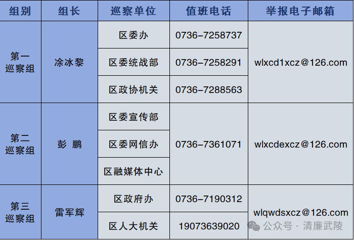 本轮巡察时间约2个半月,巡察期间设立专门值班电话、电子邮箱和举报信箱,主要受理反映被巡察单位党组织领导班子及其成员、下一级党组织主要负责人和其他干部职工(均含已离退休、已调离)关于违反政治纪律、组织纪律、廉洁纪律、群众纪律、工作纪律和生活纪律等方面问题的来信、来电、来访。